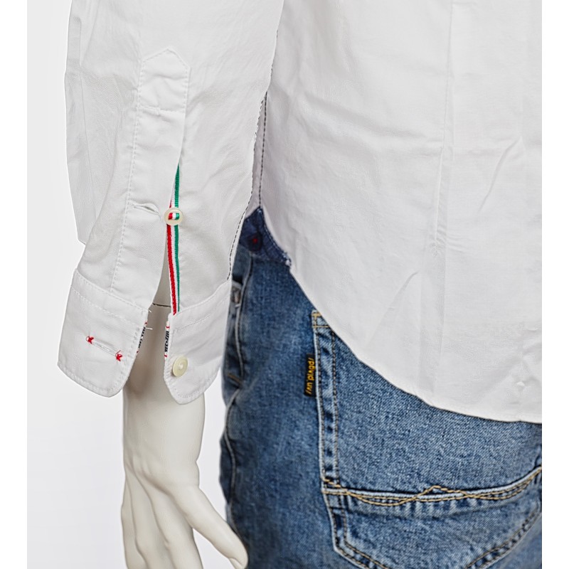 - Farblich abgestzte Knopfleiste, Manschette und Krageninnenseite